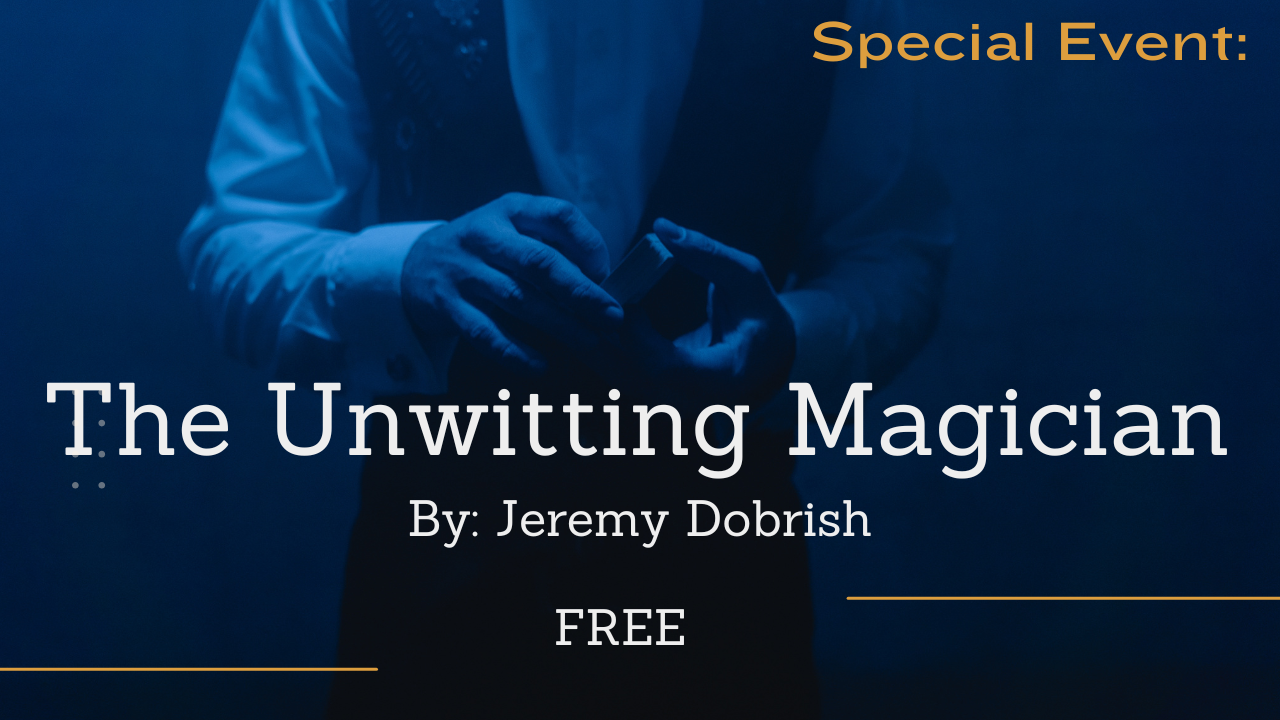 The Unwitting Magician is a unique theatrical and magical one-night-only experience. A lone actor steps onto a bare stage—armed with little more than a music stand and a sealed manila envelope. Inside: a script they have truly never seen, its contents a complete mystery. The actor has no idea what sort of play or theatrical experience may unfold. As the actor reads the script to the audience he (or she) is swept into a whirlwind of impossible feats and playful surprises, becoming an unwitting magician and inviting the audience to question who is truly in control—the performer, the script, or something more magical still?