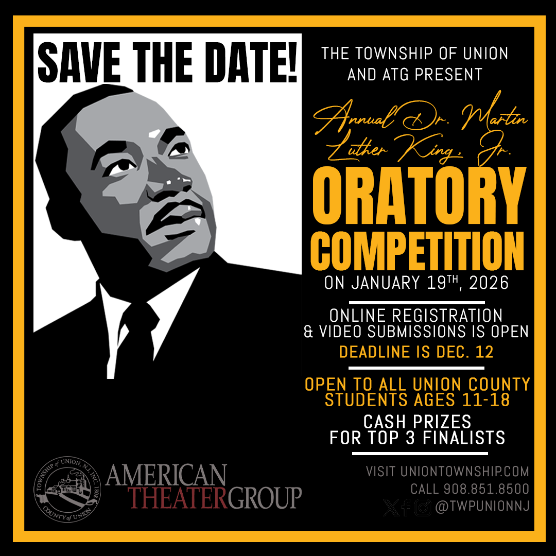 The Township of Union and ATG are proud to announce that the Annual Dr. Martin Luther King, Jr. Oratory Competition is now open to ALL Union County Students ages 11 – 18 years old.